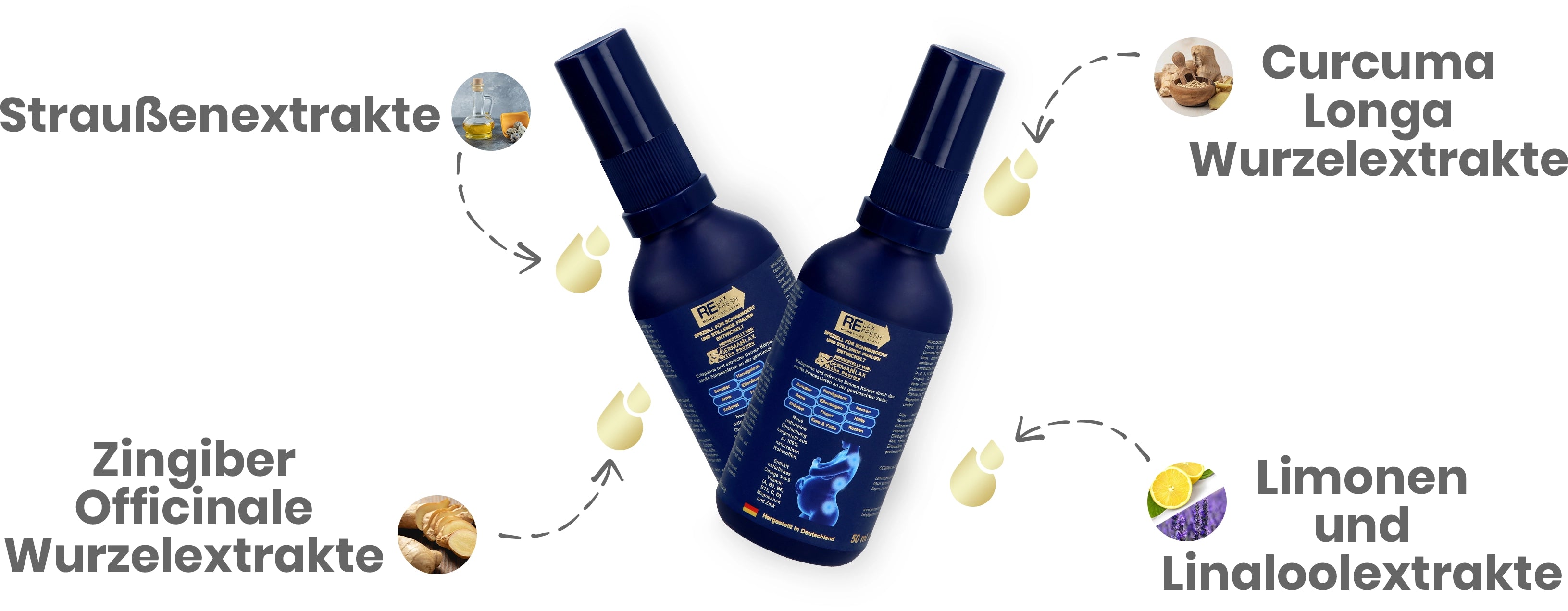 Relax & Refresh für Muskeln und Gelenke wird aus reinen und wirksamen natürlichen Inhaltsstoffen wie Straußenölextrakten, Arnikaextrakten, Kurkumaextrakten und Ingwerwurzelextrakten hergestellt. Es wird mit der neuesten deutschen Technologie hergestellt, die eine sichere und nebenwirkungsfreie Erfahrung gewährleistet, die für jeden geeignet ist - auch für schwangere und stillende Frauen.